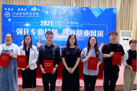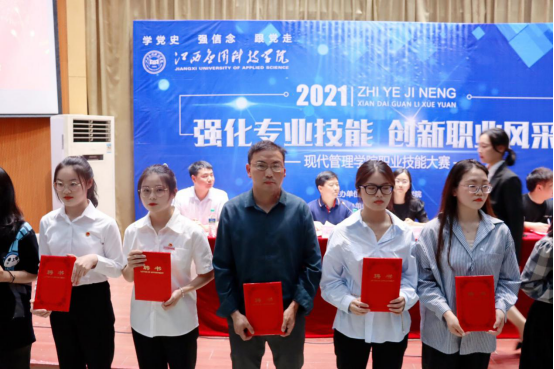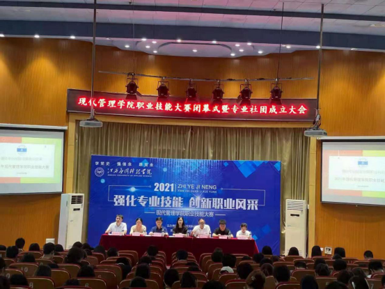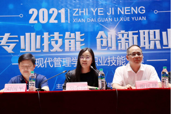 5月25日下午,现代管理学院2021年职业技能大赛闭幕式颁奖大会暨专业社团成立大会在浴星湖大讲堂隆重举行,大会邀请了学校副校长、现代管理学院分管校领导房小珍、校团委副书记陆玮,现代管理学院院长谢远健、分院党总支书记刘国平、学工科科长苏秋月、教务科科长魏雅姝、办公室主任朱小明、教务科副科长周蓉以及分院全体师生参加此次闭幕式。闭幕式由分院党总支书记刘国平主持。