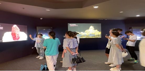 本次教学活动在黄瑛老师以及博物馆工作人员的安排下,20级旅游管理专业的15名学生各选取了一件自己感兴趣的宝石、矿物或化石展品进行讲解。同学们在进入博物馆前收集了大量相关资料,并经过了精心演练与准备,为博物馆带来了一场精彩绝伦的讲解盛宴。