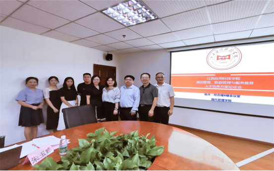 介绍结束,各位专家针对两个专业的培养方案展开讨论,江西新纪元国际旅行社董事长洪宝术针对旅游专业的培养方案提出,可以增设旅游心理学课程,还有公共关系课程这两门课程,这两门课程是社会实践中实际需要的,对于专业拓展中开设的旅游电子商务表示肯定,具有一定的创新性;针对酒店专业所开设的一系列实训课表示很有兴趣,认为这也是今后实践中往往迫切需要的。南昌香格里拉酒店培训经理针对酒店专业的培养方案表示,一般这些开设的实践实训课往往是他们行业所需要的。李志强副教授首先表示这两份方案都差不多,但是特色方面还有所欠缺,应该根据我们学校的特色去设置更加合理的人才培养体系,更致力于培养出对社会有用的旅游酒店职业教育人才。谈到是否开设高等数学这门课程房校长也提出课程设置考虑到学校的特点是应用型,关于考研和就业应考虑到95%的学生,让专业落地。谢院长也提出,我们就是要向各位专家学习,看看行业需要什么人才,我们就为他们输送什么人才,最后也提出实践学时比应该降到35%以下更为合适。