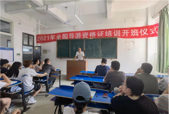 开班仪式上,谢院长介绍了导游资格证培训相关政策,并就如何做好培训工作提出了要求,鼓励同学们要自信和奋斗,努力争取考取全国导游资格证。周蓉老师介绍了培训项目教学工作的相关情况以及考证的官方通知。