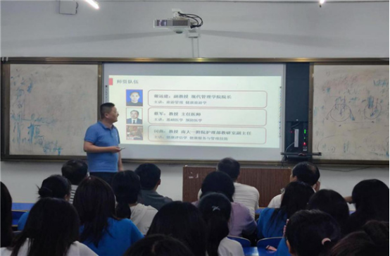 健康服务与管理专业教研室主任陈水生老师向同学们介绍了本专业的师资情况,让学生对本专业的老师有一定的了解,为今后师生交流做好铺垫。