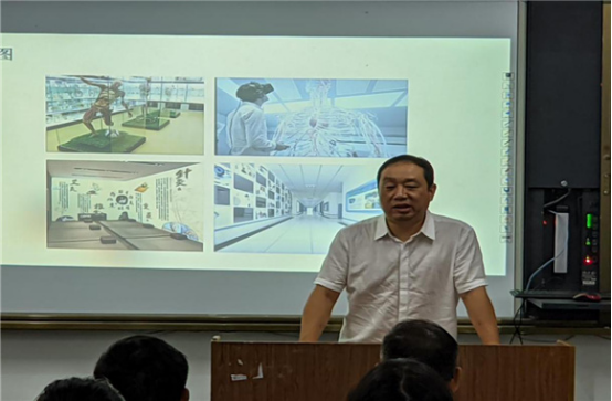 健康服务与管理专业学科带头人吴有根副教授向同学们详细介绍健康服务与管理的专业概况以及课程体系,展示了学校健康服务与管理实训中心的建设构想,并表示学校正在积极建设健康服务与管理专业的实训中心。