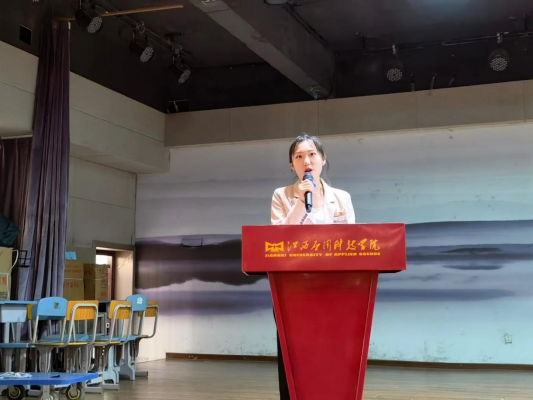 2019级老生代表罗思佳同学在发言中积极并鼓励学弟学妹们大胆尝试,突破自我,向着自己的目标坚定不移地奔跑。并希望学弟学妹们可以在国务书写专属于自己的人生新篇章。