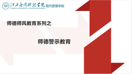 为切实加强教师职业道德建设和教师队伍管理,进一步加强新时期师德师风建设,规范教师从教行为,提高教师业务能力,10月12日,现代管理学院组织全体教职员工开展了师德师风警示教育,会议由分院副院长张济瑜主持。