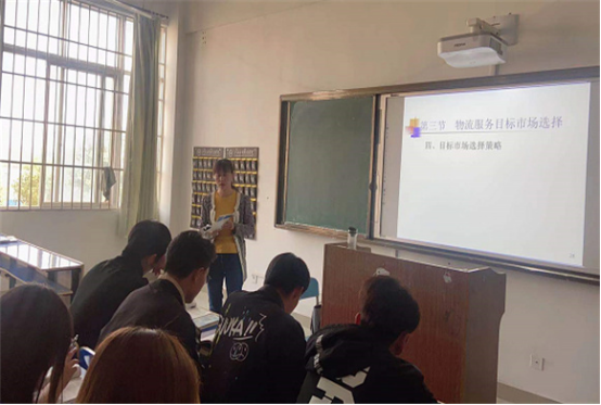 熊老师首先回顾了上次课程的内容,物流市场细分的概念、作用、原则、标准等知识,然后引出市场细分的目的是为了选择和确定目标市场,展开今天的教学。同时,紧扣本次课程内容开展了课程思政教学,自我目标与定位的探讨,引导学生树立正确的人生观、价值观和世界观,客观、合理、准确的评价自己,认识自己,找准自己的目标和定位。