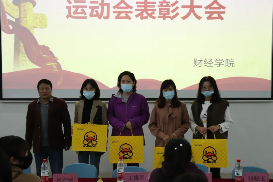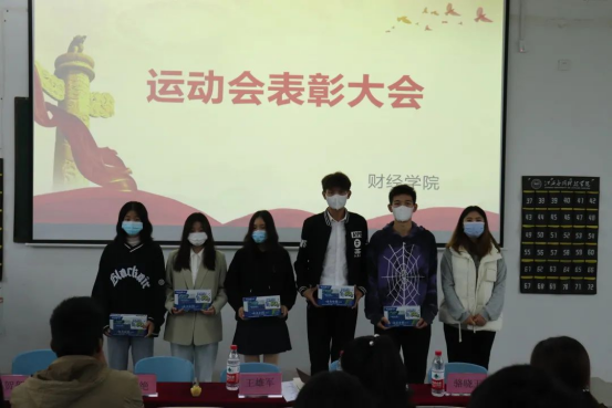 为推动我院体育精神文明建设,提高学生的身体素质和集体荣誉感,财经学院2021年校运动会表彰大会于2021年11月5日在三达楼阶梯一教室举行,财经学院院长王雄军、党总支书记何难绝、教务科科长高慧红、学工科科长赵贺贺、办公室骆晓玉老师,全体辅导员老师以及全体运动员和学生会工作人员出席了本次活动。