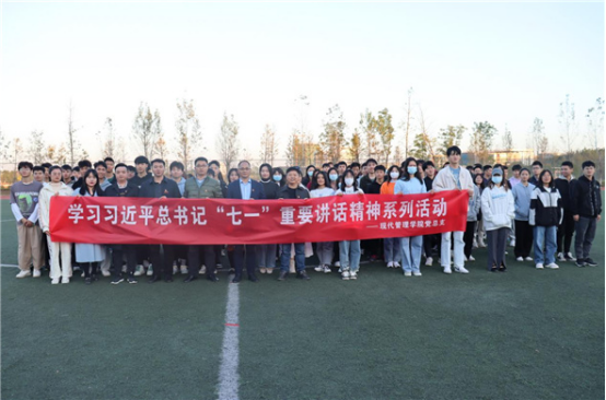 11月10日下午,浴星湖畔,风和日丽。为推进我院全体在校学生、第23期师生入党积极分子和师生党员学习习近平总书记“七一”重要讲话精神走深走实,现代管理学院党总支在学校操场组织举办诵读、领读、齐读讲话原文活动。