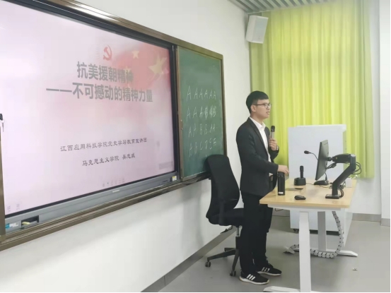 2021年11月5日中午,现代管理学院分党校第23期入党积极分子第七堂党课由马克思主义学院专职老师吴志威授课,讲授题目为:抗美援朝——不可撼动的精神力量。