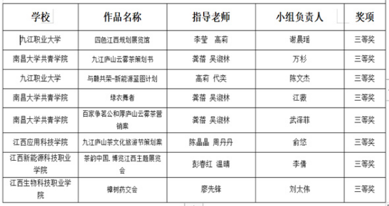 2021年12月10日,由江西省商务厅和江西省教育厅共同主办,中国会展经济研究会指导,南昌师范学院和江西省会议展览协会承办的“第四届大学生绿色会展创新创意挑战赛”在江西南昌嘉莱特沁庐国际酒店顺利举行。我院市场营销专业学生在刘志艳、林文和陈晶晶、周丹丹指导老师们的带领下经过一个多月的认真备赛,层层选拔、激烈角逐,参赛作品《2022首届中国(江西)文化与旅游VR博览会》和《九江庐山茶文化旅游节策划案》分别荣获本科组文案策划类和高职组文案策划类三等奖。