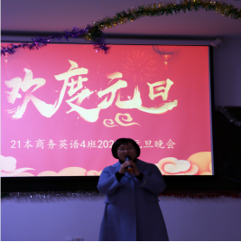 夜幕降临,胥副校长来到数贸教室参加班级元旦晚会。首先她用英语向全班同学致晚会贺词,祝福同学们新年快乐,身体健康,学习进步。她希望同学们认真学好专业知识,积极参加第二课堂活动,努力培养自己的兴趣爱好,让自己成为德智体美劳全面发展的优秀应用型人才。