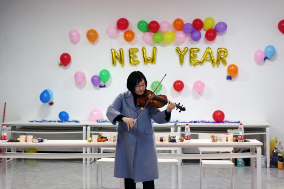 在晚会上,胥副校长率先为同学们演奏了小提琴独奏曲,优美旋律让在座的同学们沉醉。接着,胥副校长教同学们唱了一首英文歌“Edelweiss”和一首中文歌“茉莉花”。随后,她和大家一起观看了同学们精心准备地节目。
