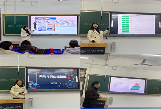 学院参与第一批大规模课堂教学改革的老师共14人,在此次说课中,老师们分别从课程的目的与任务、教学内容、学情分析、教学方式方法、教学手段、考核方式及改革等方面依次进行说课。总体来说,老师们准备较充分,能积极贯彻OBE教学理念,注重适合应用型学生培养的教学方式方法探索。
