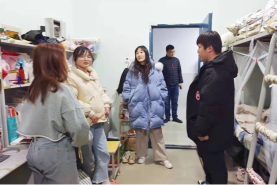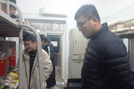 晚上8点多,学院领导深入寝室,询问同学们寒假的安排和新学期的打算,同时了解大家生活、学习等方面存在的问题与困难。针对寝室的热水问题,当场打电话给后勤和相关工作人员前来解决,让学生们感受到如在家一般的亲切温暖。