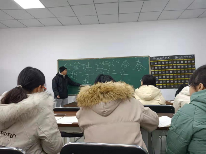2月25日,在三笔字的课堂上,黄老师细心地讲解课程内容,将基础笔画在硬笔书法中的注意点向同学们一一介绍,并且在部分笔画的讲解中还有与之前软笔书法相关知识点的衔接,更加加深了同学们的理解,便于同学们的实际练习。