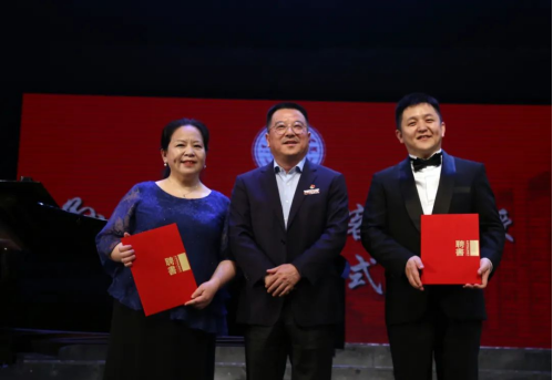 辰林教育集团董事局主席、学校董事长黄玉林为指挥家孙毅、钢琴演奏家高梅颁发“客座教授”证书
