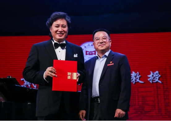 辰林教育集团董事局主席、学校董事长黄玉林为著名男高音歌唱家戴玉强颁发“特聘教授”证书