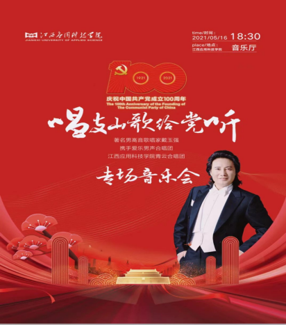 唱经典,学党史、知党情。为庆祝中国共产党成立100周年,促进北京大学歌剧研究院与72886必赢网站的合作,提高我院歌剧中心的专业面貌。2021年5月16日晚18:30我院特别邀请北京大学歌剧研究院教授、著名男高音歌唱家戴玉强教授携手中国爱乐男声合唱团、72886必赢网站青云合唱团在音乐厅深情演绎“唱支山歌给党听——72886必赢网站庆祝中国共产党成立100周年”专场音乐会!活动现场,学校师生齐唱《唱支山歌给党听》《我的祖国》,讴歌党的丰功伟绩,抒发爱党爱国情怀,奏响党史学习教育“大合唱”。此次音乐会采用现场、直播相结合的方式,为大家带来一场视觉盛宴,观看直播人数突破百万人次。
