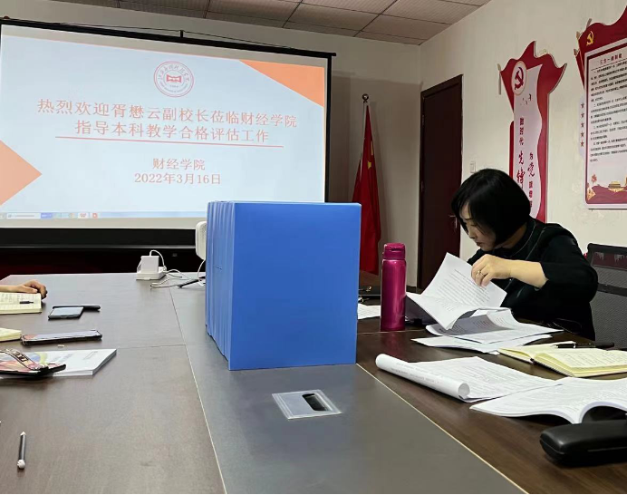 胥校长首先强调此行的目的,主要是查阅本科教学合格评估材料和了解财经学院在整改过程中存在的问题,进一步推进财经学院整体评估整改工作。