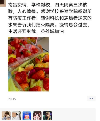 收到关爱的同学们在激动和感动之余,纷纷表示:感谢学校和学院在这个特殊时期对他们的亲切关怀,让他们在隔离的日子里,也能感受到来自学院的温暖。在疫情防控封闭管理的特殊时期,一定会听从学校和老师的安排,做好自身的防疫工作,并将积极配合学校的抗疫措施,耐心等待疫情防控春天的到来。