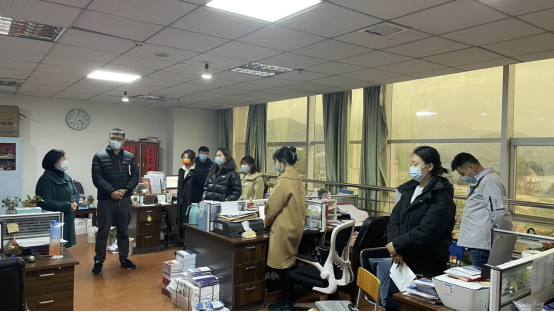 会议结束,胥校长前往综合大楼407国际商务学院学工科办公室,看望连续多日奋战在一线的辅导员老师们,胥校长对辅导员老师表示由衷的感谢。她重点强调:辅导员们要继续“不忘初心、牢记使命,守土有责、冲锋在前,同舟共济,共同努力,疫情定可防。终有一天,必将摘下“口罩”,去想去的地方,歌唱亲爱的祖国。