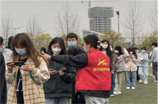现代管理学院学生党支部积极发动并动员在校学生党员,主动担当疫情防控排头兵,先锋队,让党旗在疫情防控一线高高飘扬!通过成立党员先锋岗,组织线下线上疫情防控培训,学生党员在组织核酸检测,维持秩序,做好后勤服务与保障,争当志愿者,带头传递正能量等方面敢于当先锋,挑重担,亮身份,做表率。他们主动走到疫情防控第一线,勇于担当、积极作为,立足本职岗位,做好疫情防控志愿服务工作,用实际行动让党旗始终在防疫一线高高飘扬。