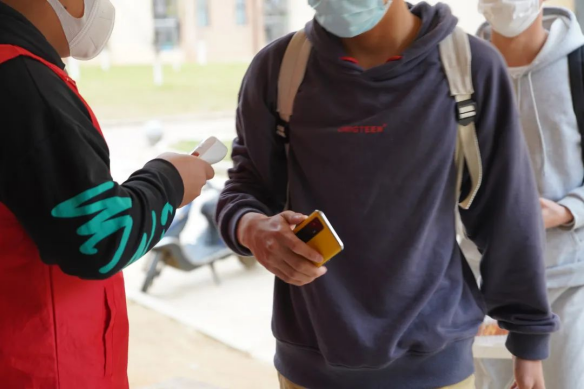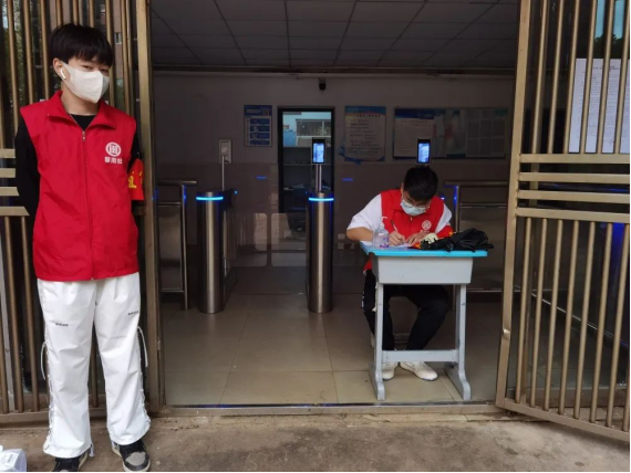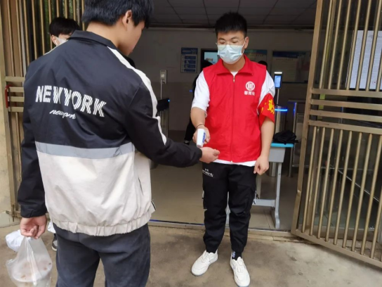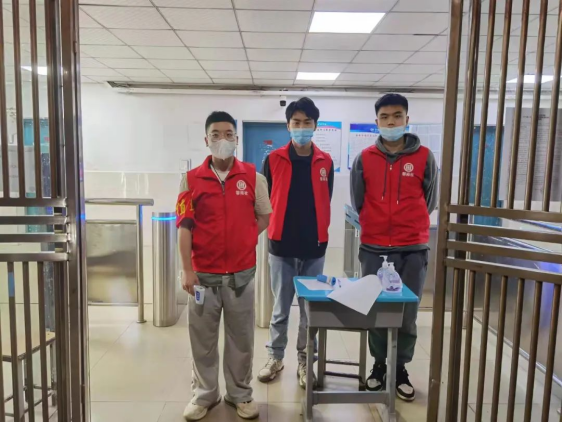 共同抗疫是常态,做好防护别懈怠。馨雨社的志愿者们在男寝门口测体温,进行信息登陆,在校园疫情防控中,把控好出行环节,做好疫情防控工作,落实防控职责,为学生的出行做好安全保障工作。