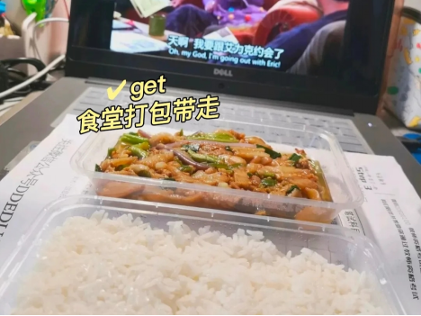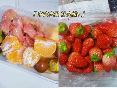 特殊时期,为积极配合学校的疫情防控工作,我们都自觉地把食物打包带走。同时,我们要均衡健康饮食,比如多吃水果可以补充大量的维生素~