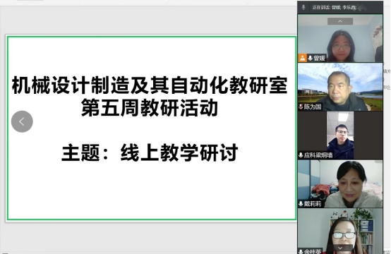通过本次线上会议,机械设计制造及其自动化教研室各老师之间彼此交流线上教学经验,确保线上教学合理有序开展,一定程度上促进线上教学质量的提高,有效地推动教研室科学地开展好线上教学工作。