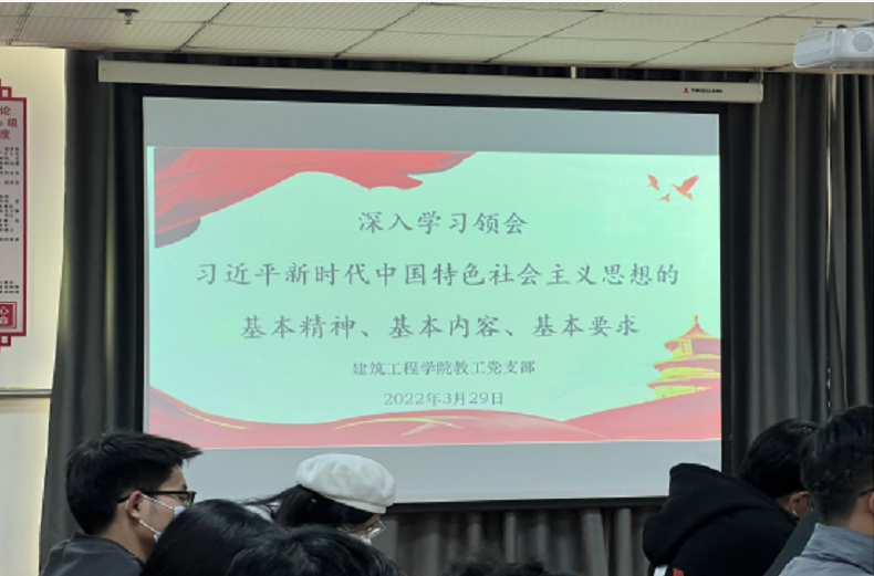 3月29日下午,建筑工程学院教工党支部开展理论学习进行时——教工党支部系列主题学习。本次主题学习内容是《深入学习领会习近平新时代中国特色社会主义思想的基本精神、基本内容、基本要求》。主题学习活动由建筑工程学院教工党支部书记许冬冬主持并带领学习,教工党支部全体党员参会学习。