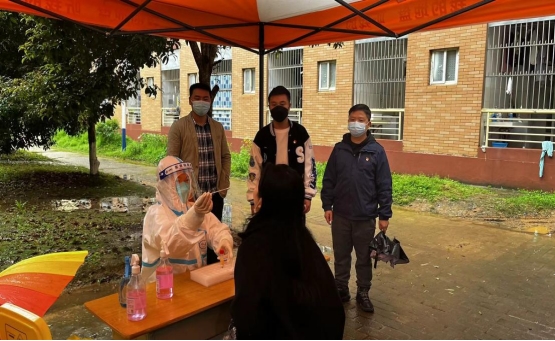 3月25日,学校早上7点紧急通知进行第四轮全员核酸,我便急忙赶到2栋女生宿舍协助她们搬桌子、搭帐篷,因为是雨天,准备工作进行的有点缓慢,不过赶在医护人员的到来之前将工作准备完毕。为了方便同学们,我们将帐篷摆放在紧靠宿舍门的位置,因为空间小,所以保持安全距离尤为重要。我便在女生楼栋门口组织队伍,提醒她们要保持一米间距。在医护人员、志愿者们的有效配合下,第四次核酸检测很快完成了!