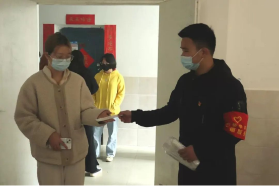 每天早上,协同其他志愿者运送核酸检测前的准备材料、提醒寝室同学到楼下做核酸检测、组织进行环境消毒、体温监测、信息登记、防疫提示等。