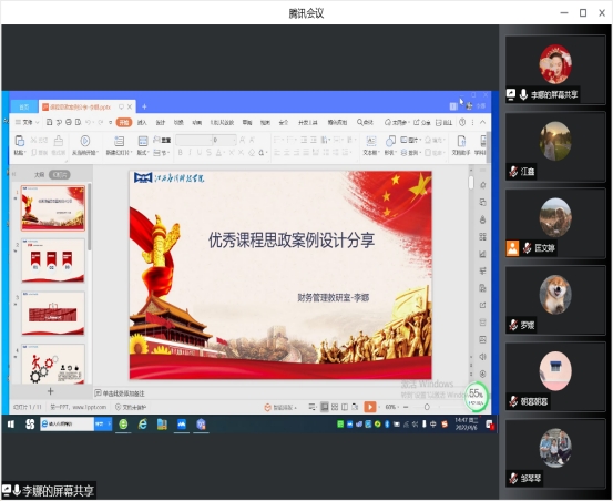 4月6日下午,财经学院会计教研室开展了2021-2022第二学期的第七次教研室活动,活动内容分为三块内容:分享课程思政优秀案例、分享自我师德修养以及教师磨课。