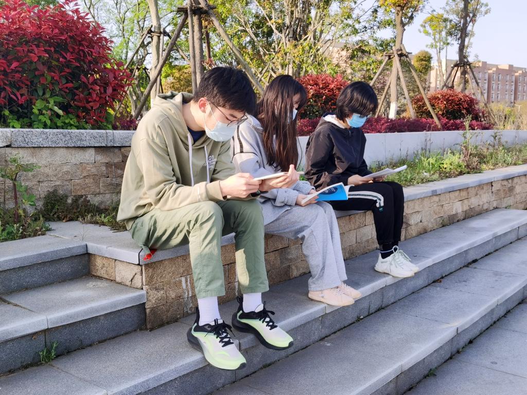 阳光洒在一张张专注的脸上,他们成了浴星湖畔中一道美丽的风景线。有的同学在背单词,有的同学在阅读红色经典,有的同学在阅读小说集......晨读的书籍可谓是丰富多彩,有趣至极。还有的同学在相互交流,畅谈书中的趣意。每个人都沉浸在读书之中,忘记了风曾吹过。