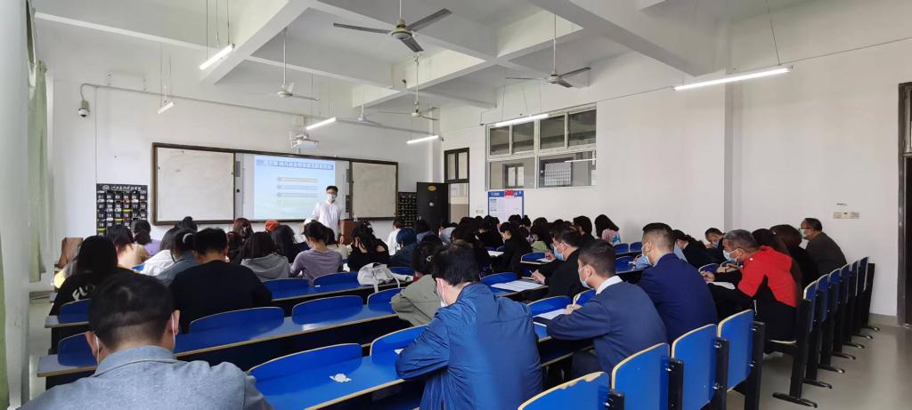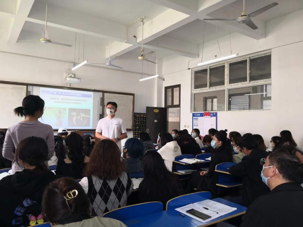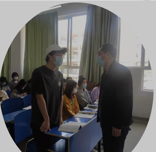 2022年4月14日上午第三节课,三达楼327教室,教育学院李勤彪老师正在准备即将实施的《幼儿社会性发展及教育指导》教学时,副校长李建萍,教务处和多个学院的领导来到教室,进行随堂听课。李校长和各位领导和蔼可亲的情绪感染了李老师,他镇定自若地开始实施教学。