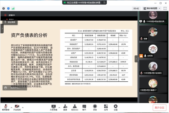 课上,徐希希先通过班级分组小组组长回顾新租赁准则实施对财务指标的影响的案例分析,然后徐希希老师再进入讲解一项已识别资产处理重难点。在讲解中,徐希希结合实际工作中的典型案例,分析在一项已识别资产处理中常出现的问题以及学生需要注意的事项,分析实际操作和理论学习的区别。用身边的例子,让学生容易理解;用典型的案例,让学生印象深刻。