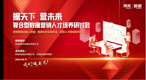 为进一步提高师资带教水平,提升整体教学质量。4月11日下午,现代管理学院组织市场营销教研室全体老师参加由用友网络科技股份有限公司指导,新道科技股份有限公司、用友职业教育集团联合主办的“据天下营未来一一复合型数据营销人才培养研讨会”,开展线上直播学习的师资培训。