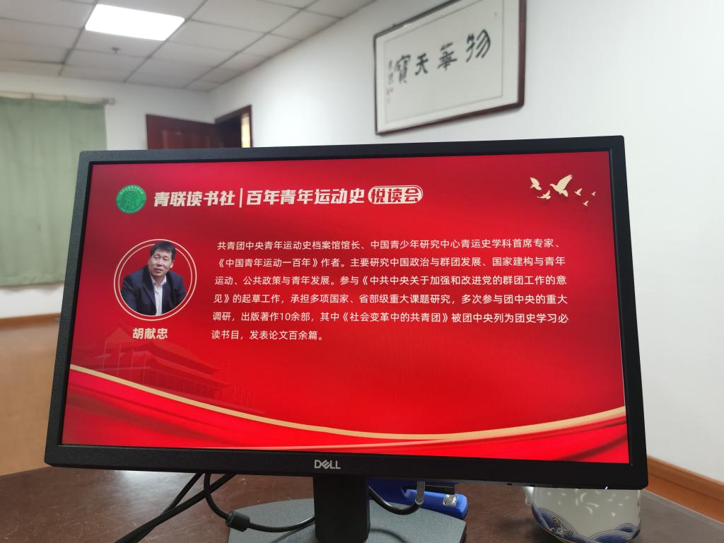 活动邀请了共青团中央青年运动史档案馆馆长、中国青少年研究中心青运史学科首席专家、共青团中央青运史档案馆馆长、《中国青年运动一百年》作者胡献忠进行主题分享,他在分享中指出,中国青年运动的主题始终是为实现中华民族伟大复兴而奋斗,党的正确领导是青年运动成败的关键,青年运动离不开基层群众,中国青年所要坚持的是永久奋斗。
