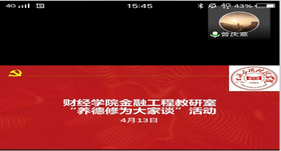 4月13日下午15:00,财经学院金融工程教研室11位专职教师通过腾讯会议进行了本学期第八周的线上教研室会议活动。