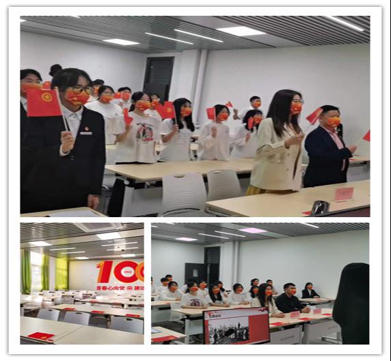 活动分为6个环节,团支书进行五四青年节文化知识介绍,新发展团员代表陈美芳同学作分享,新团员入团宣誓,老团员重温入党誓词,老团员代表曾伟强同学作分享,全体同学起立唱响《光荣啊!中国共青团》,现代管理学院党总支书记刘国平讲话。