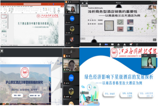 2022年5月8日,现代管理学院组织开展了2022届酒店管理专业毕业论文答辩工作。受疫情影响。本次答辩采取线上答辩的方式进行,2022届酒店管理专业本科毕业学生共26人,分为两组,每组4名答辩老师。教务处副处长魏雅姝也作为答辩组成员参与此次答辩工作。此外,教研室还邀请了南昌香格里拉酒店的人力总监杨晶晶作为企业教师一起参与答辩过程。