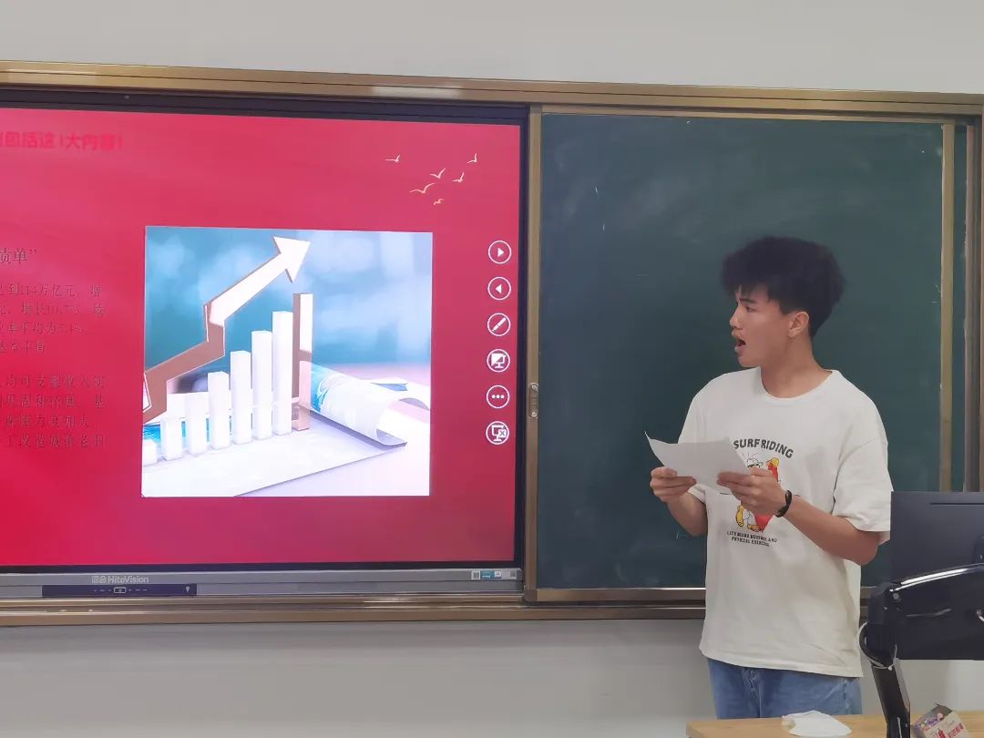 杨江龙老师分享了自己的2022年全国“两会”精神学习心得,他讲到两会内容中,今年发展主要预期目标和重点工作:一是国内生产总值增长5.5%左右;二是城镇新增就业1100万人以上,城镇调查失业率全年控制在5.5%以内;三是居民消费价格涨幅3%左右;四是居民收入增长与经济增长基本同步;五是进出口保稳提质,国际收支基本平衡;六是粮食产量保持在1.3万亿斤以上;七是生态环境质量持续改善,主要污染物排放量继续下降;八是能耗强度目标在“十四五”规划期内统筹考核,并留有适当弹性,新增可再生能源和原料用能不纳入能源消费总量控制。并且阐述了推动经济社会高质量发展和坚持创新在现代化建设全局中的核心地位的必要性