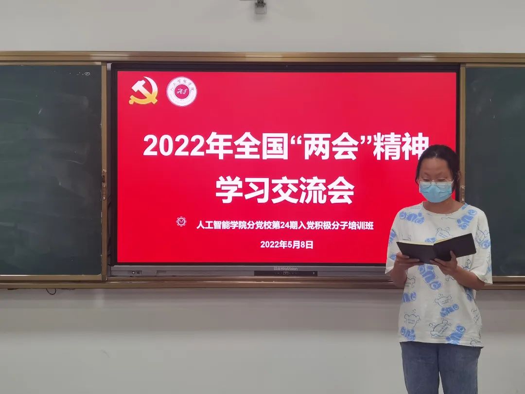 2022年5月8日,人工智能学院在行知楼127教室组织开展了第24期入党积极分子培训班研讨教学——2022年全国“两会”精神学习交流会,人工智能学院学生党支部组织委员、培训班班主任杨江龙主持,人工智能学院全体24期入党积极分子参加。