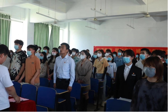 财经学院学生支部宣传委员聂方付带领全体党员同志重温入党誓词。师生党员们郑重地举起右手,庄严宣誓,表达对党忠诚、为共产主义事业奋斗终身的决心。
