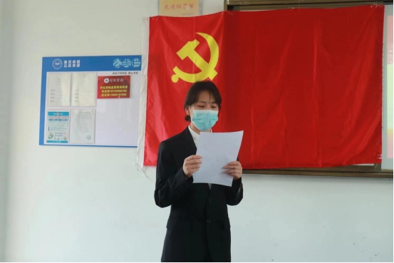 财经学院学生支部书记赵贺贺讲说入党的要求,介绍本学期学院学习制度和学习课程并通知了考核的时间和规定,党课的授课安排。