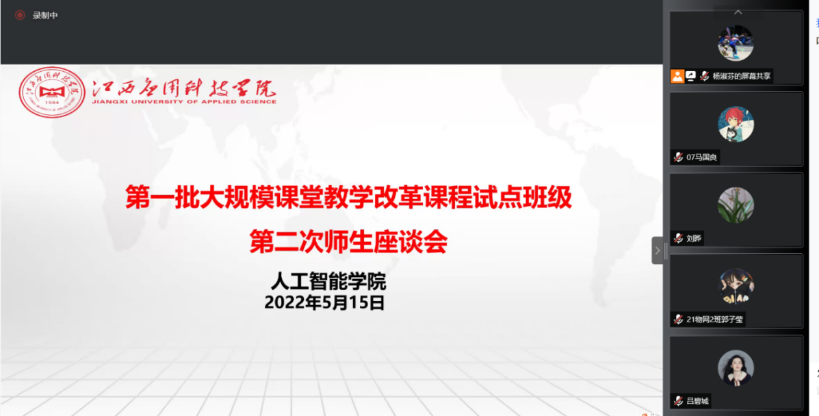 在座谈会上,学院6位参加第一批大规模课堂课改课程负责教师先后汇报了各自的课改实施情况、现状和存在的问题,他们分别从教育教学理念更新,课堂教学组织方式变革、教学内容、教学方法、考核方式的改革,以及在线课程资源建设、线上师生交流互动等方面介绍了好的做法和经验,同时,他们也谈到了课改过程中存在的问题和困惑,并对下一阶段课改工作的思路和重点举措作了说明。最后,试点班级的学生对课程改革提出自己的意见和建议,以评促进,教师即可以针对性的改进课程,全力打造课堂教学改革“样板间”。