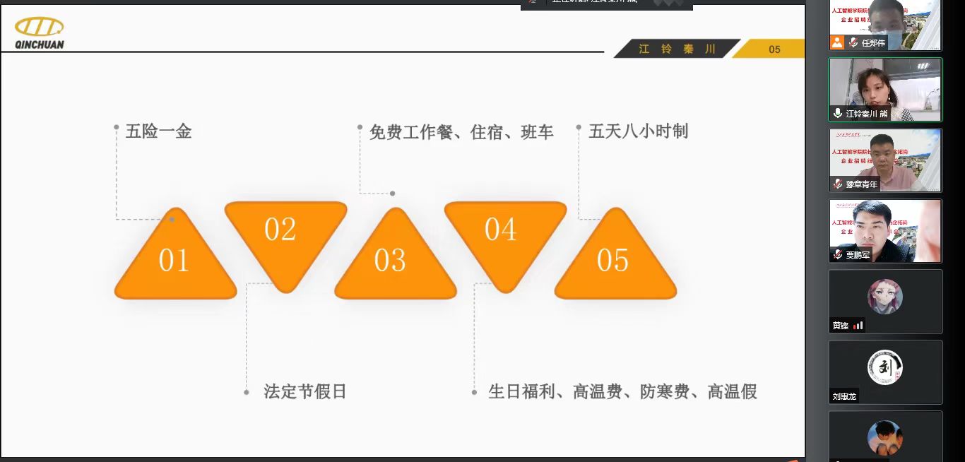 招聘会上江西联益光学有限公司、江铃秦川电器有限公司、厦门天马微电子有限公司、江西创图科技有限公司、江西金太阳教育、江西万豪传媒六家企业通过PPT展示等方式向同学们介绍了企业概况、企业文化、职业发展方向、岗位需求以及福利待遇。六家企业为我院学生提供了储备技术员、助理工程师、图像处理、短视频运营、销售等100余职位。参会同学也与用人单位积极互动,针对自身情况与企业进行线上交流沟通,主动了解用人单位的基本情况并表达自己的求职意向。