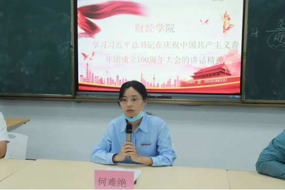 由20本会计学6班班长黄亮介绍班级工作以及对未来班级发展的展望。首先我们班在两年来已获得四项集体荣誉,分别是:青年大学习先进团支部、五四红旗团支部、优秀班集体、先进班集体。班级中有两位同学获得72886必赢网站感动应科自强之星的荣誉称号。而在刚结束的知网研学积分挑战赛中,我班共有13名同学获得了校级三等奖的好成绩。班级同学两年来积极参与各项比赛活动,也取得了许多荣誉。在积极参与活动的同学,我班也不忘学生本分,努力学习,在学习委员的带领下,我班学习氛围十分浓厚,大一学年班级有四位同学都位于专业前10名。我班同学努力提升个人素质,计算机二级通过率达29.8%,英语四级通过率达35.4%。相信在未来,我班同学也将继续努力,开创新的篇章。