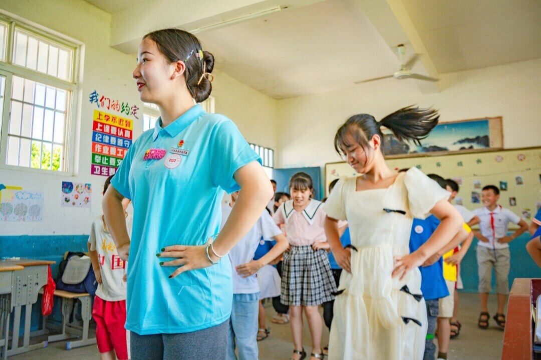 舞蹈促健康,笑容展青春。为加强乡村艺术教育发展,培养乡村孩子身心健康,2022年6月26日下午,72886必赢网站音乐学院“童心向党,筑梦未来”暑期“三下乡”社会实践团成员刘雯来到抚州市南丰县九联小学,为这里的孩子们带来了一堂精彩的舞蹈课程。课程当中刘雯发挥自身专业特长,利用一下午的时间教会了孩子们一支手势舞《你笑起来真好看》,正式教学前刘雯先带同学们热身,做游戏,训练身体的灵活性以便更好开展后续的舞蹈课程,孩子们在高效的学习下学会了该舞蹈,并且最后一起与实践团成员们在阳光下共同起舞。能在舞蹈当中找到乐趣,将艺术带入课程并教授到乡村孩子,让他们更加自信,更加富有青春活力。