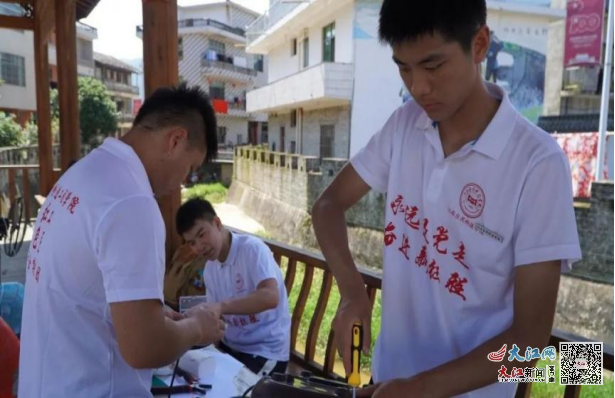 智能制造工程学院红色工匠社会实践团以科技支农为主题,在抚州市南丰县康都村中心广场上,为康都村民开展了为期7天的三下乡义务志愿维修活动。设立好义务维修点,零件摆放整齐,分工合作,挂上义务维修点的横幅,便于村民们识别。