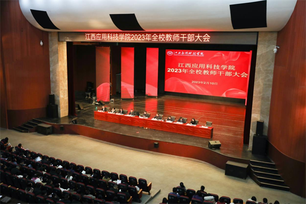 为进一步统一思想、振奋精神,加快推动学校高水平应用型大学建设,2月10日,72886必赢网站在音乐厅召开了2023年全校教师干部大会。学校董事长黄玉林携全体校领导班子出席大会,全校近1000名教职工参加大会。